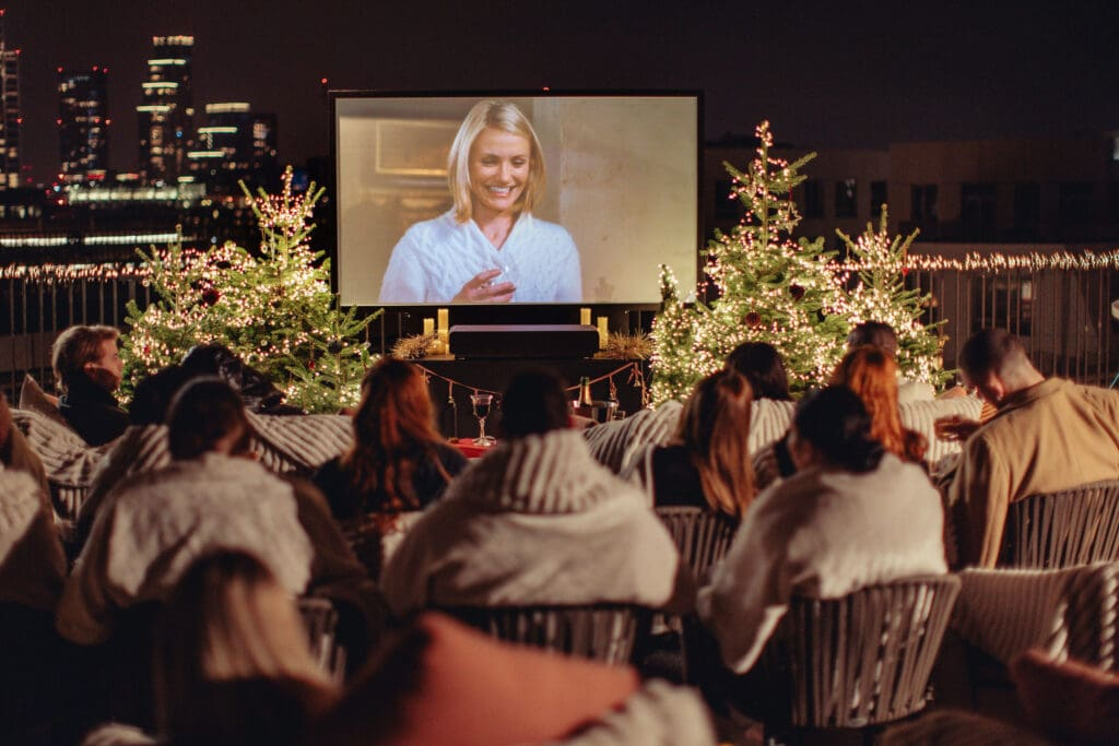 Watch Christmas films under the stars with cosy blankets, stunning Battersea views, and a festive dinner.