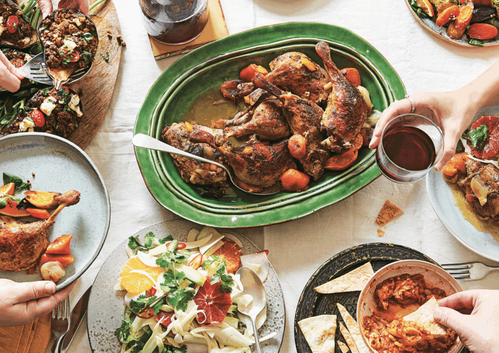 Thanksgiving supper club with family-style sharing platters, turkey, and pumpkin cheesecake. Hosted by chef Bridget Fojcik.
