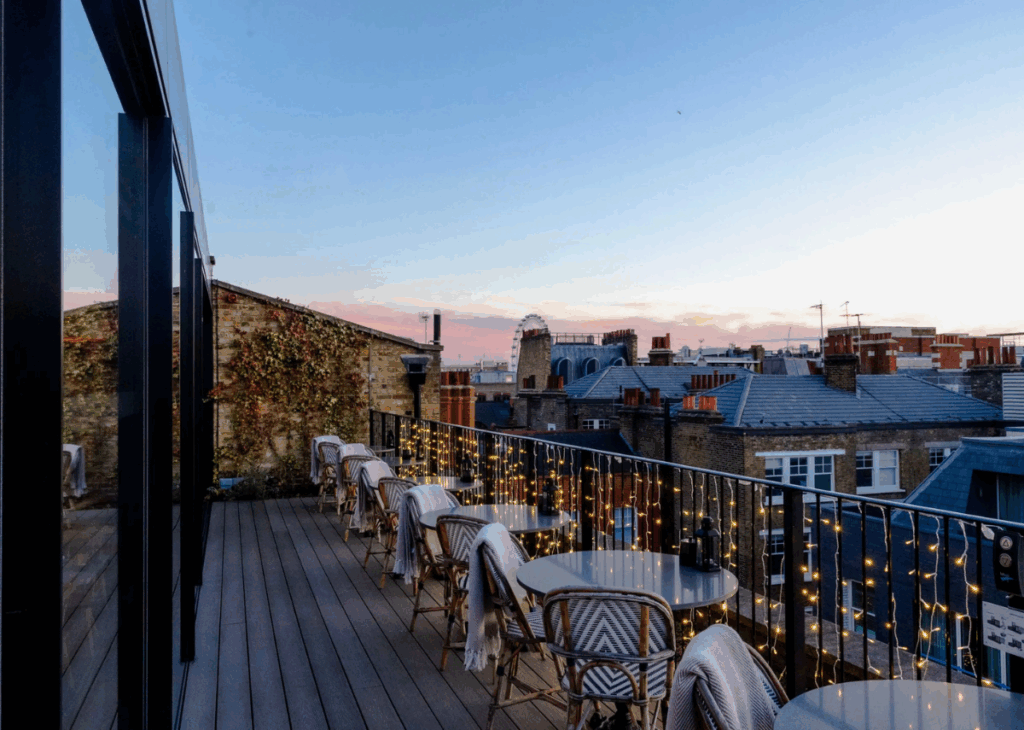 Hidden away in Knightsbridge, this intimate rooftop garden offers a peaceful escape from city chaos. Premium wines, expertly crafted cocktails, and an atmosphere that encourages lingering conversations make this a true gem.