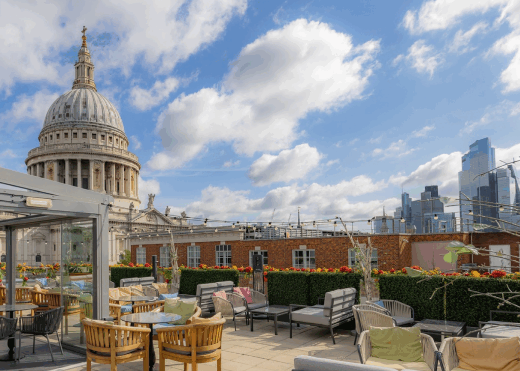 St Paul’s Cathedral has never looked better than from Sabine’s terrace. Botanical décor creates an urban jungle feel, while the retractable roof means weather worries are a thing of the past.