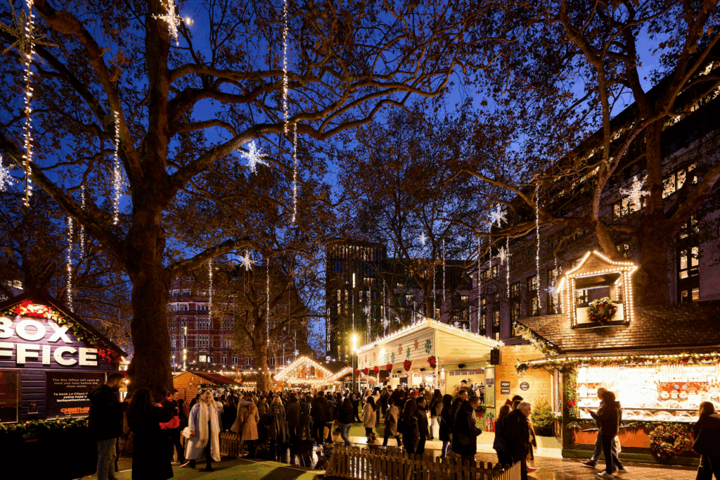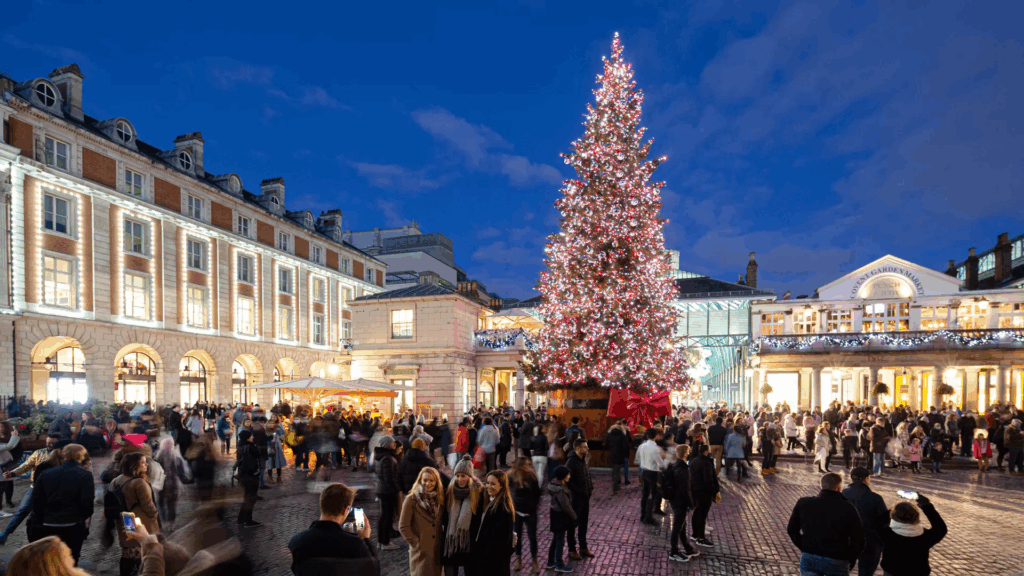 Experience the festive charm of Covent Garden, adorned with over 300,000 sparkling lights, a 60-foot Christmas tree, and a variety of seasonal stalls offering unique gifts, artisanal products, and festive treats.